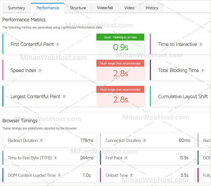 در نسخه جدید جی تی متریکس تب Timings حذف و به جای آن تب “Performance” قرار داده شده است، تب Performance معیارهای عملکرد سایت شما را با جزئیات بیشتری نشان می دهد.