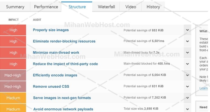 Structure” تب جایگزین جدید برگه های PageSpeed و YSlow در جی تی متریکس است، این تب شامل تمام معیارهای Lighthouse مبتنی بر ساختار و عملکرد بهینه سایت است.